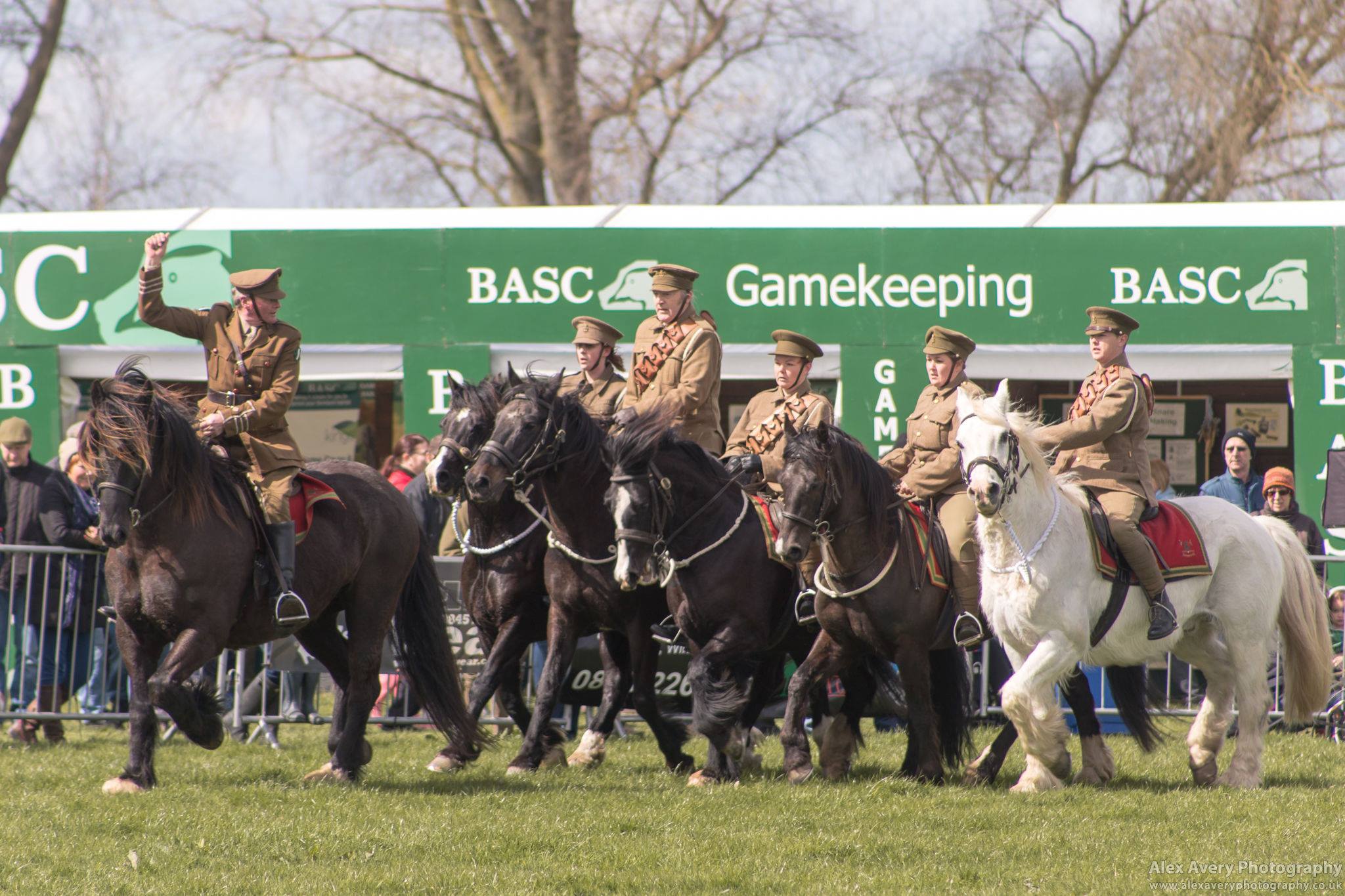 Cadfarch is a Welsh word which means ‘War Horse’. Our Cadfarch display shows the requisitioning and training of civilian horses for use by the army in the First World War. It begins with a scene of civilian horses on a typical day at start of the war. We show the army requisitioning the horses, which are then ‘trained’ and take part in a passing out parade at the walk, trot and canter. The horses then go off to Flanders and the display ends with an exciting charge into battle. The entire 20 minute display is performed to music, with accompanying commentary.